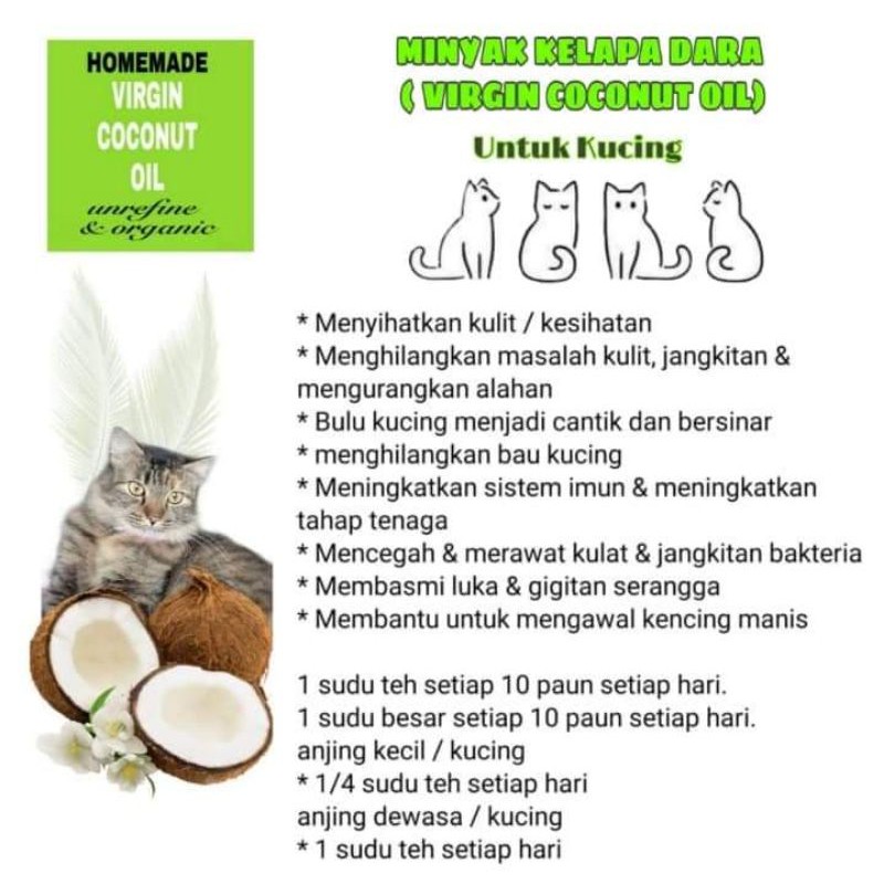 Vco virgin coconut oil minyak kelapa dara untuk kucing & anjing repack. Seiring bertambahnya usia, kucing lebih rentan terhadap masalah kesehatan inflamasi seperti radang sendi serta sendi bengkak yang menyakitkan. Bolehkah minyak kelapa meningkatkan kesihatan kucing anda? Minyak kelapa dara memang bagus dalam membantu merawat masalah kulit.